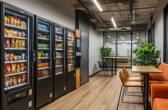 Mit unseren Snack- und Getränkeautomaten bieten wir ihrem Unternehmen eine flexible und unkomplizierte Möglichkeit, ihrn Mitarbeitern jederzeit und ohne Personaleinsatz mit einer abwechslungsreichen Auswahl an Snacks und Getränken zu versorgen.