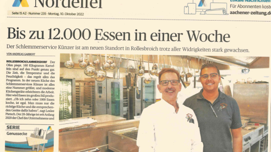 Mit dem 30 Jährigen Firmenjubiläum wurde auf einem 4000qm großen Grundstück eine neu, hochmoderne Großküche gebaut und der Firmenstandort nach Rollesbroich ins Gewerbegebiet verlegt.