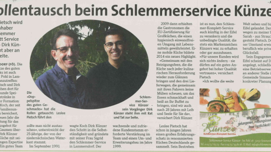 Leslee Pietsch hat das Unternehmen von DIrk Künzer übernommen und ist nun Geschäftsführer. Dirk Künzer bleibt weiterhin im Unternehmen als 'Senior Chef'.
